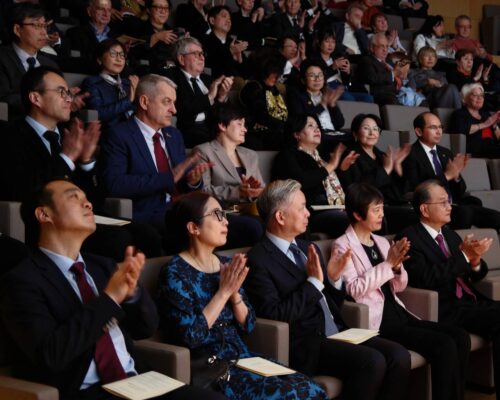 Мероприятие получилось торжественным и теплым. Послы двух стран Алексей Мешков и Дэн Ли выступили перед полным залом Центра.