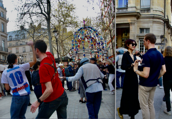 Танцы, импровизированные выступления уличных оркестров, бесконечное времяпрепровождение за уличными столиками кафе (про то, что есть места внутри все мгновенно забыли), любовные свидания. Словом, весна в Париж действительно пришла. Ура.